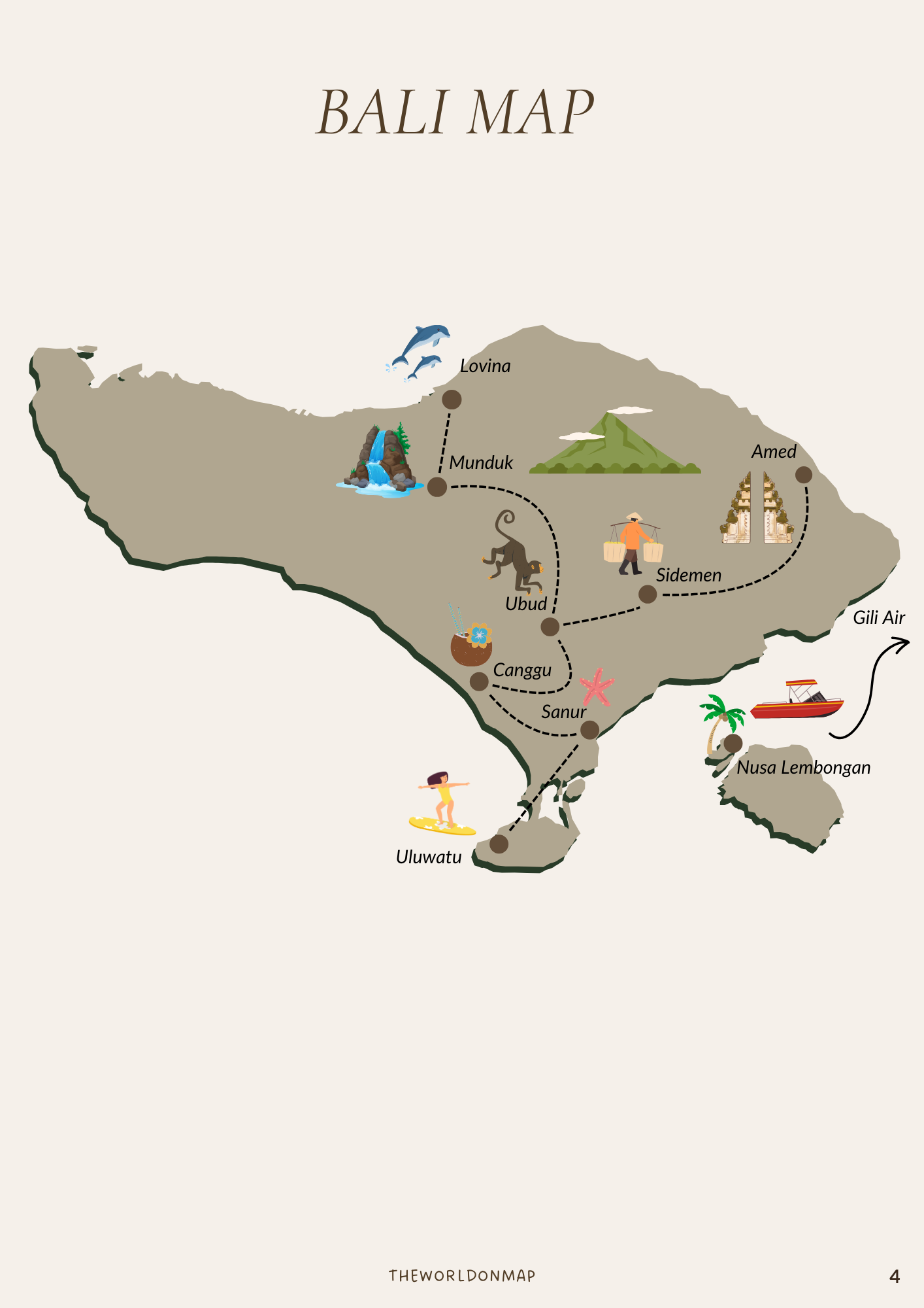 Een uitgebreide gids met 135 pagina's, boordevol praktische tips en uitgebreide informatie over Canggu, Amed, Gili Air, Lovina, Munduk, Nusa Lembongan, Sanur, Sidemen, Ubud en Uluwatu.