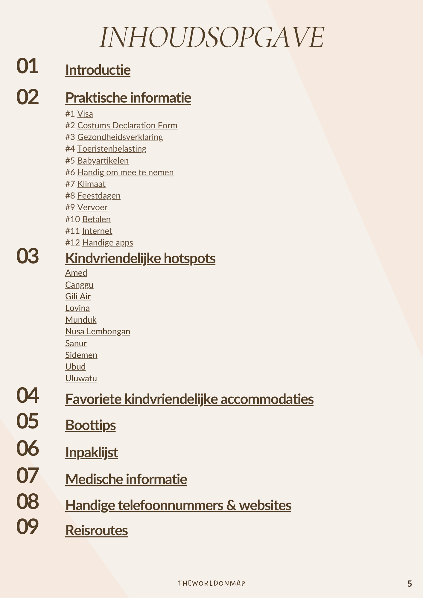 Weet precies wat je moet meenemen (en wat je beter thuislaat). Inclusief insider-tips over de boottocht, handige items voor op reis, medische informatie, reisroutes en handige telefoonnummers & websites. Alles voor het soepel reizen met kids naar Bali.